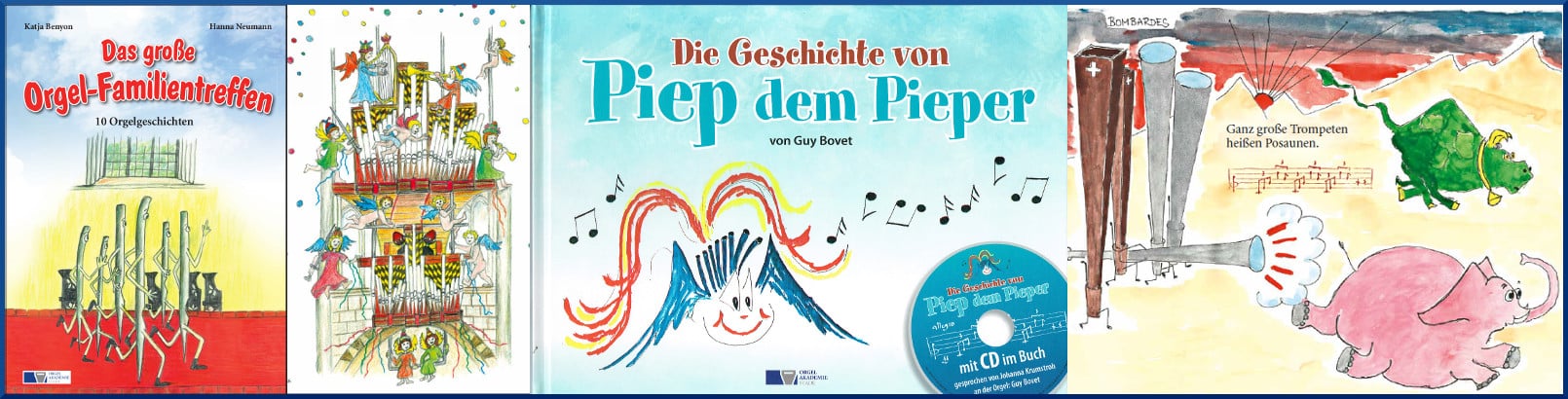 In den Jahren 2016 und 2017 hat die Orgelakademie Stade zwei Kinderbücher zum Thema „Orgeln“ herausgegeben: „Das große Orgel-Familientreffen“ und „Die Geschichte von Piep dem Pieper“: